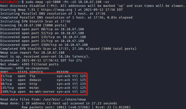 sudo nmap -p1-5000 -Pn -sS 10.10.67.180 -vv