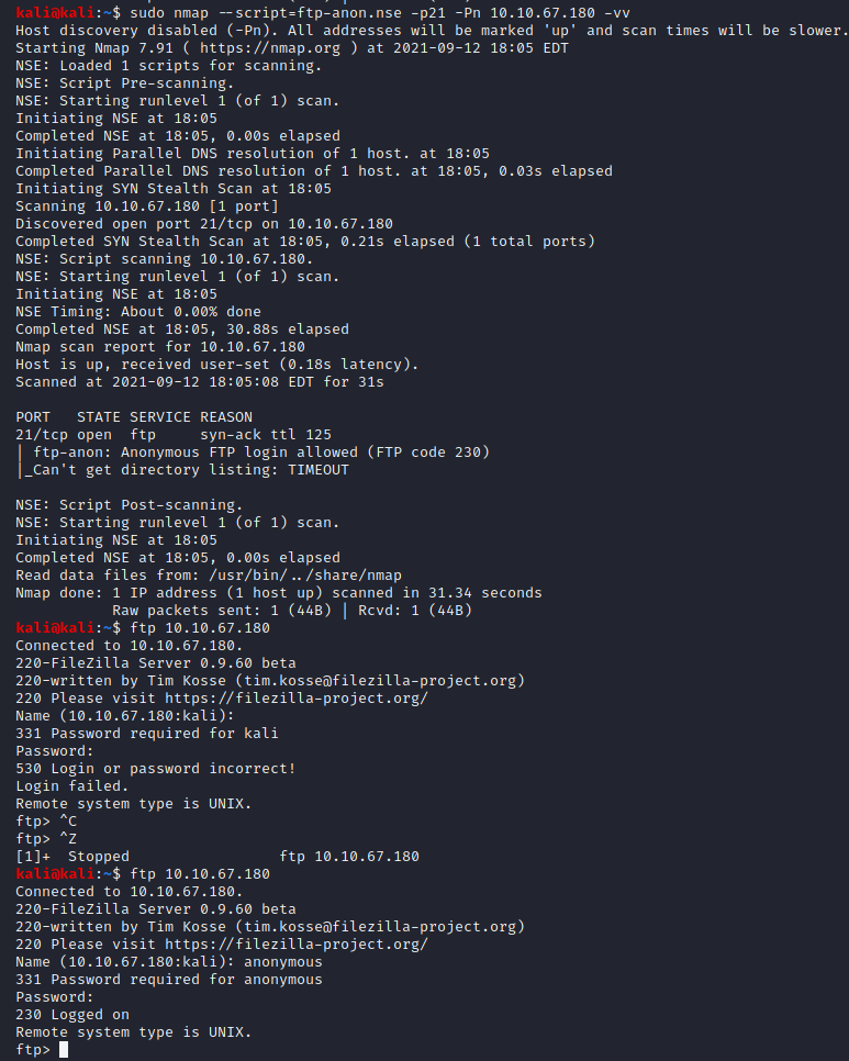 sudo nmap --script=ftp-anon.nse -p21 -Pn 10.10.67.180 -vv