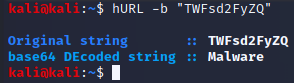 hURL -b "TWFsd2FyZQ"