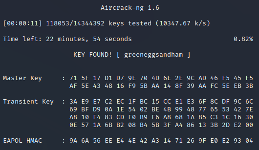 aircrack-ng NinjaJc01-01.cap -w /usr/share/wordlists/rockyou.txt